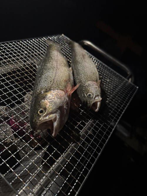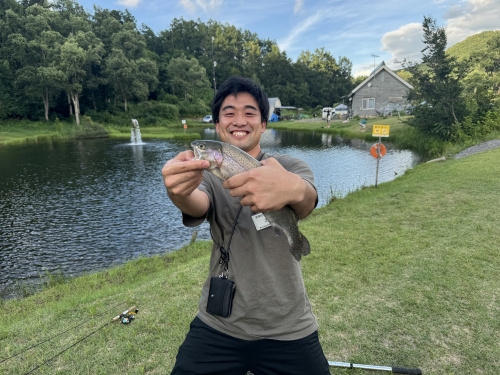 キャンプ場には大きな池があり、40cmほどの大きなニジマスがたくさん泳いでいました。